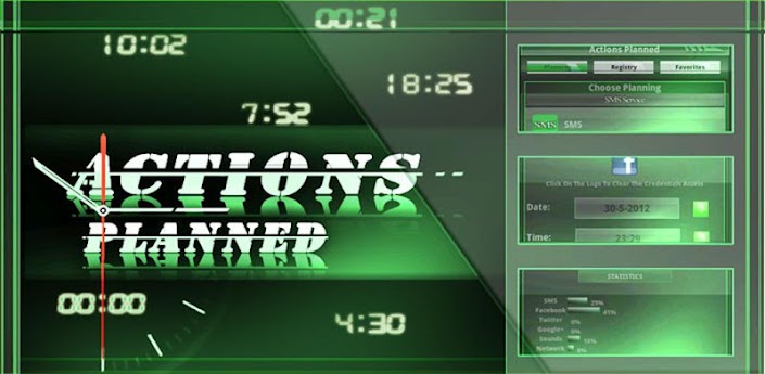 Este aplicativo executa operações de planejamento, como o envio de um SMS em um determinado dia, hora e minuto...